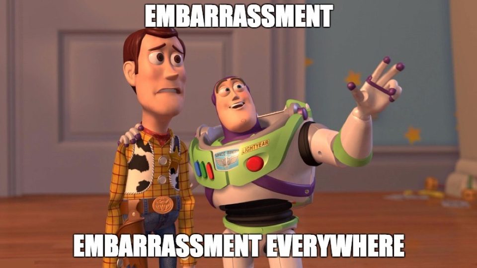 I’m no psychologist, but I reckon that of all the emotions a human being can experience, embarrassment must rank one of the worst. For a start, you can’t control it. It happens. Usually because you’ve made a right klutz of yourself. Though it’s not simply the act of being dolt-like that triggers the reaction.