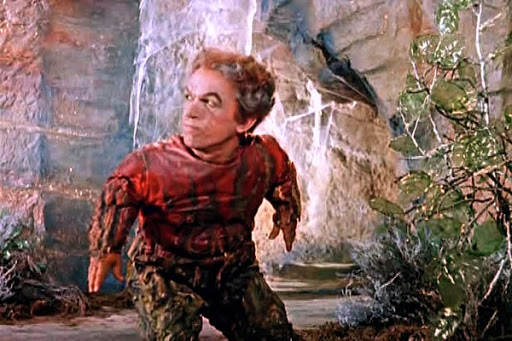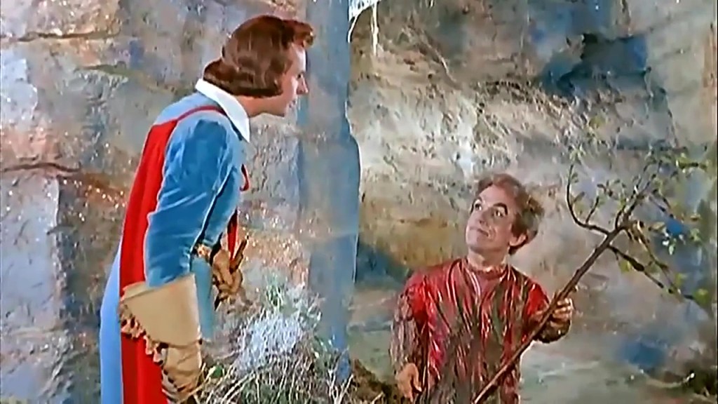 Then for no reason other than to demonstrate Eastern Bloc special effects circa 1957, a giant goldfish appears in a lake and the Princess true to form acts all diva-like, causing the dwarf to change her appearance to match her distasteful personality.
