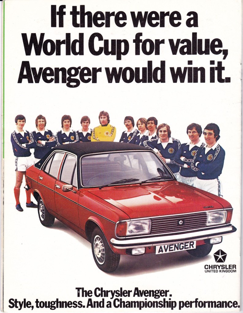 That was the marker laid down for Scotland’s World Cup efforts in ’74 and ’78. There were Vauxhall Victors for Germany and Chryslers for Argentina.
