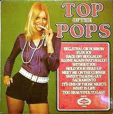 The observant reader will notice that the central image is not from the Top of the Pops series. Rather, it was released by Hallmark’s rivals, Music For Pleasure, who were first to exploit the compilation market. This particular one was the first such album into our household, closely followed by TotP Volumes #15 and #18, from January and July 1971 respectively.
