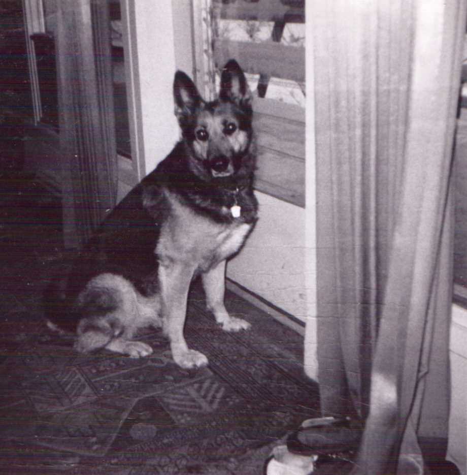 After a campaign that lasted some weeks, Mom came home on the bus one dark winter evening with a bundle of fur under her coat. My brothers named her Zoo. She was another German Shepherd rescue puppy with huge ears that met in the middle and big paws which soon bounded their way into our hearts. Her party piece was standing on her hind legs at the dining room window, farting as she watched life go by behind the net curtains – usually when Mom and Dad had company. Dad would just quietly strike a match – always worked. Zoo took an instant dislike to Frisky, forcing the cat to live on the veranda roof. Every now and then they would have a spectacular fight, with the cat holding her own. She lived up there for years.