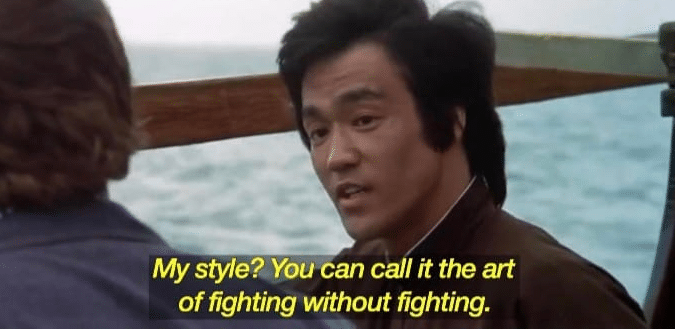 If you’ve seen the film you’ll know what I mean. There are more ways to win a battle than knocking ten bells out of your opponent and I can say in all honesty, that in the 50 or so years since I decked Ewan Miller on the school bus, I’ve never once struck a single human being.
