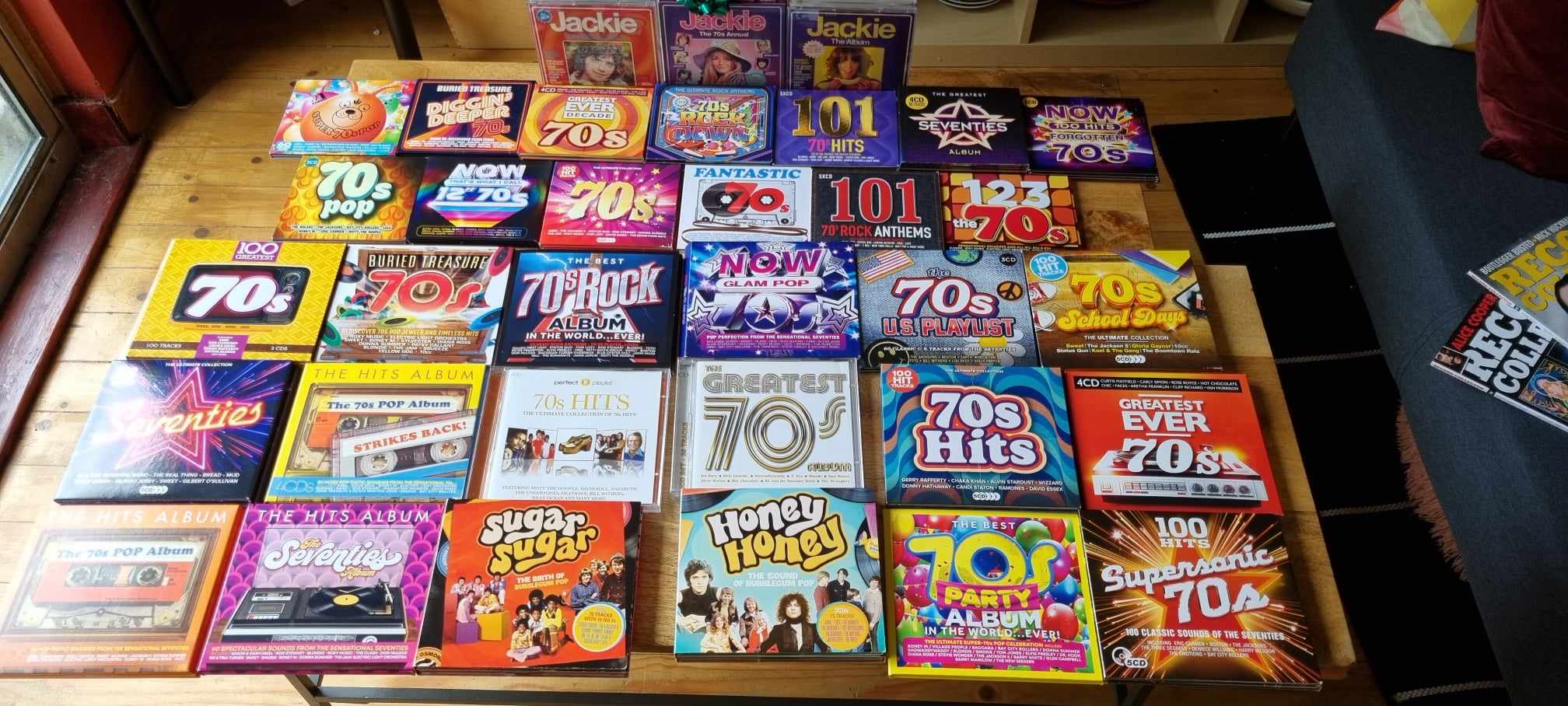 This is just the Seventies CD compilations – there would be hundreds of vinyl 7″ singles and LPs too.
