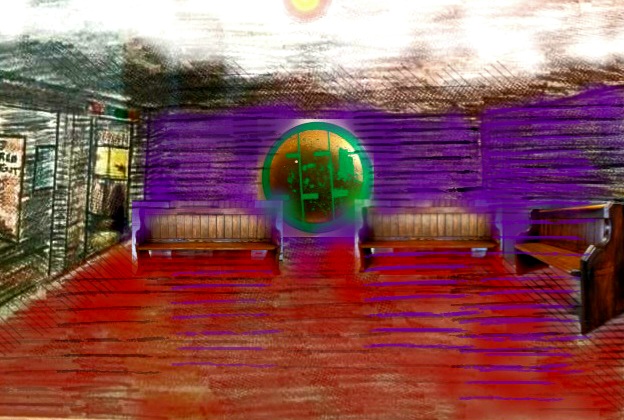 The club’s SSG Crest was emblazoned on one wall in Da-Glo paint. There were wooden benches lining three walls. The entire area was only about 30′ x 25′,