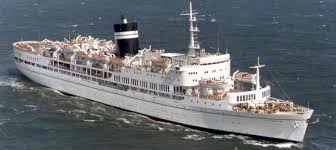 being the only pupil whose name was left in the hat when the draw was made for those to go on the cruise, I had to attend class as normal while my pals were swanning all over the Med. I think this may be a picture of the ship. I don’t really know – I didn’t even get a poxy postcard.